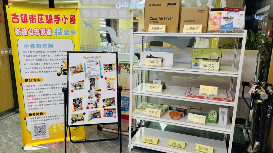 在金山的枫泾古镇,外卖骑手小王用上了由上海大学学生团队开发的“枫行侠”小程序,成为“流动网格员”,送餐沿途发现安全隐患上报就能获得积分,可向古镇街区党支部兑换实用礼品。